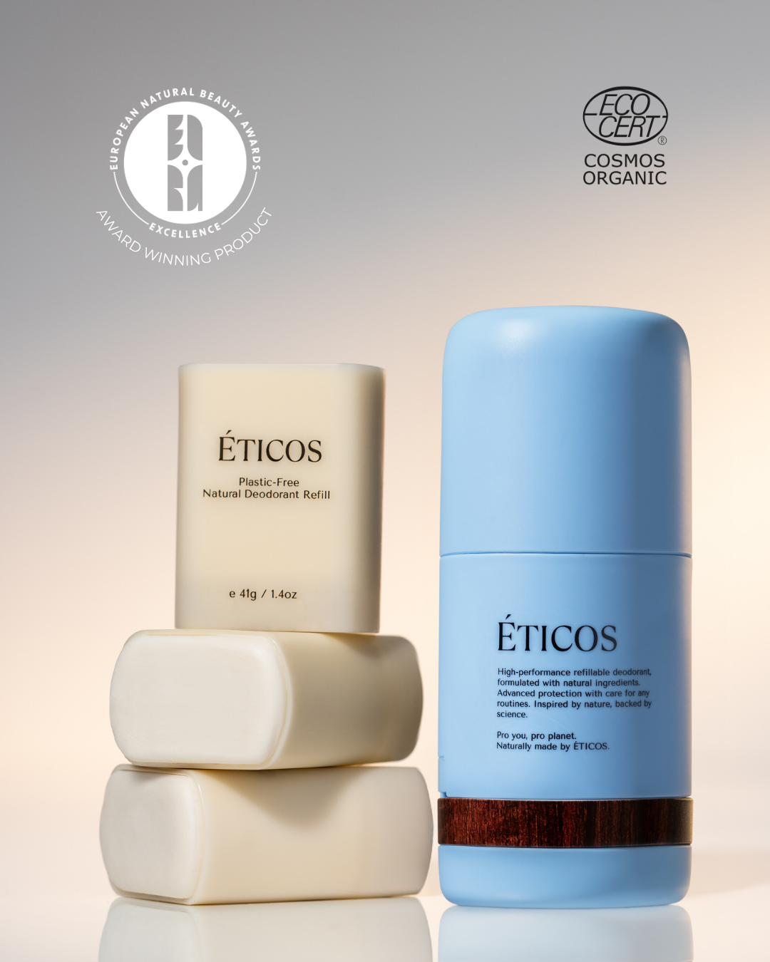 ÈTICOS NATURAL DEO, Discover all 3 available refill scents from ÉTICOS in one Starter Pack with a Blue case.